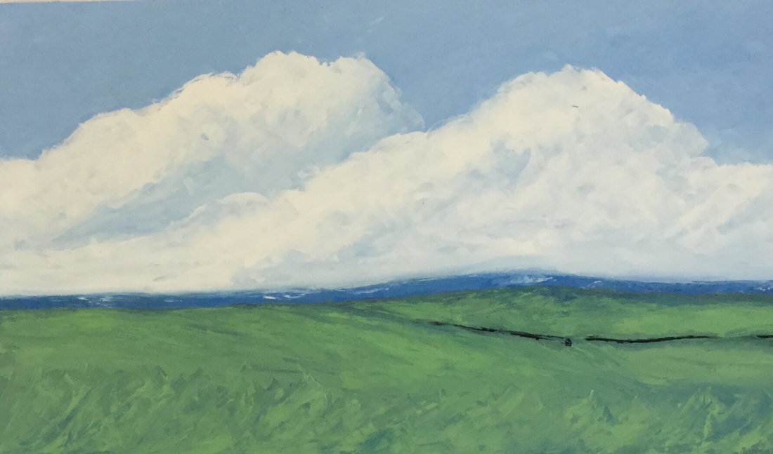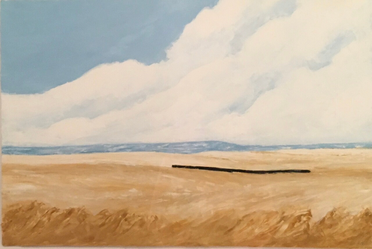 Davi Nelson was involved in ranching and raising cattle for many years. The isolation of the location and its profound sense of space remain the focus of her paintings. “My work is a reflection of the landscape I live in. It is not a portrait of a specific place, but rather an attempt to evoke a sense of place and a way of life in a rural environment.”  Her work has been exhibited internationally in such diverse venues as: