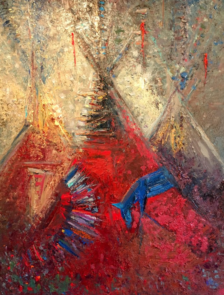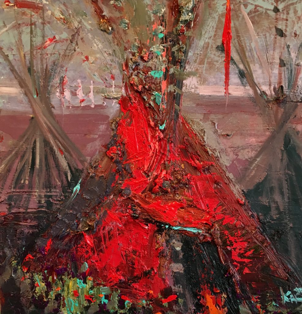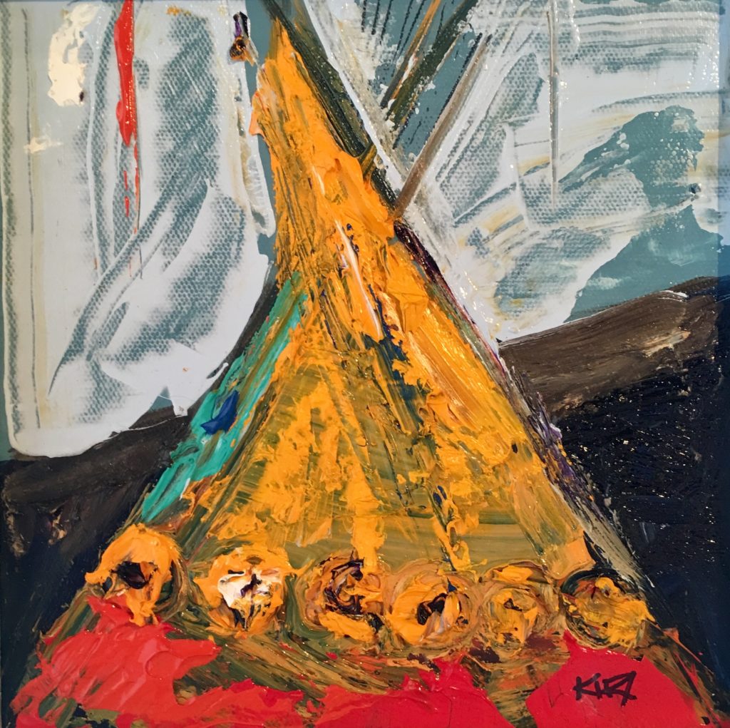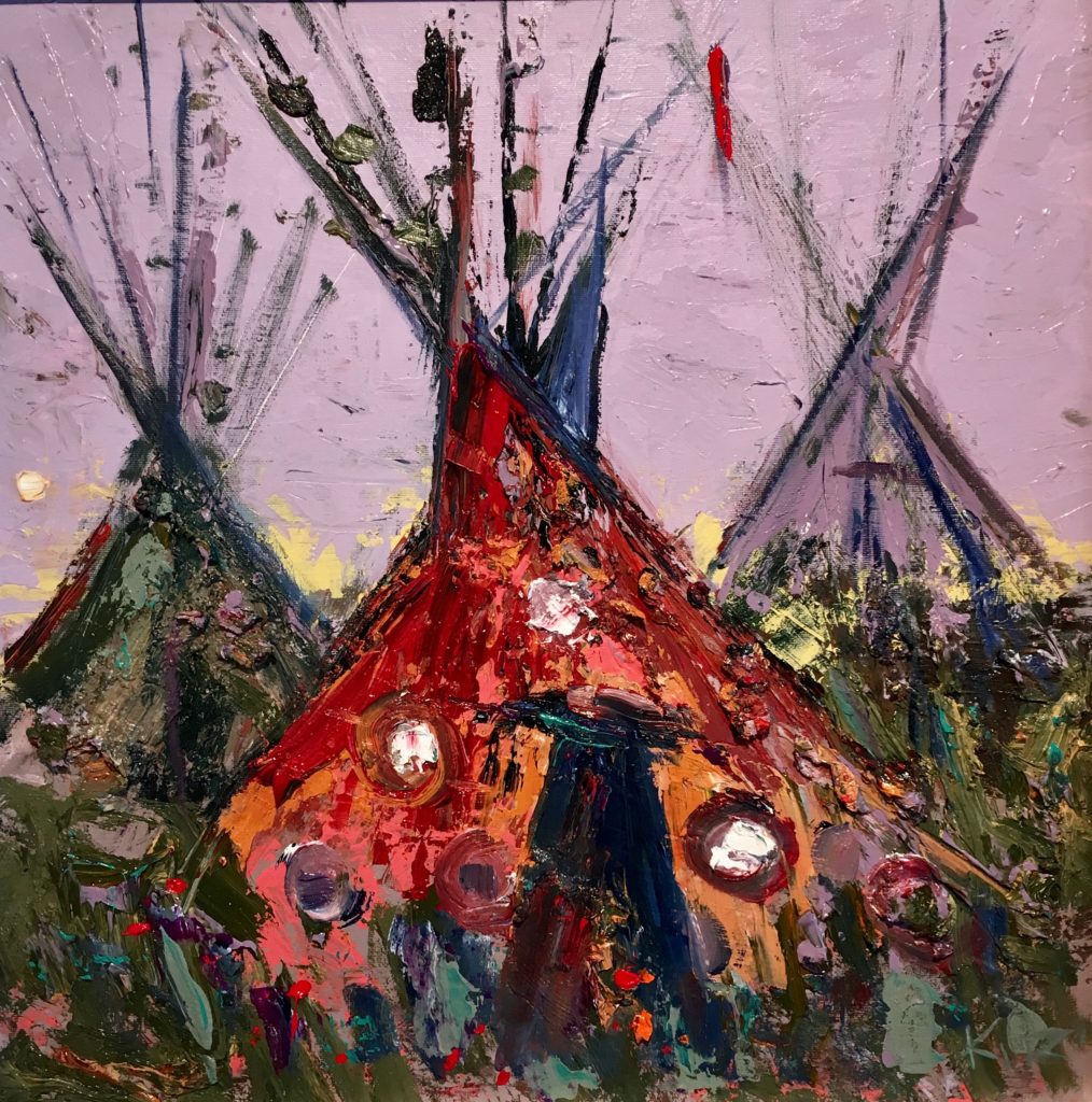 Kira creates spaces through scope, scale, color palettes and subject matter and is known for thick and juicy impressionistic paintings. In the past few years, she has gained national publicity for depicting Montana tribal tipis. These tipis have been used in promotions for nationally recognized museums such as the CM Russell in Great Falls, MT.