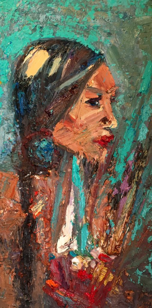 Kira is a modern impressionistic oil painter who has training in Russian Impressionism and Western Tonalism. She paints what she knows: the land, the people, and the culture of the west. Montana in particular. These impasto style oil paintings are on large, custom-made, gallery-wrapped canvases.