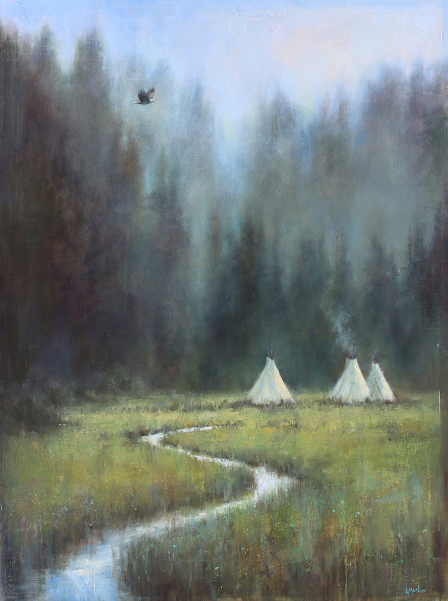 Wild at Heart reflects a deep connection to wild places, the land, and the life within them. Drawn from Lori McNee’s backcountry adventures, photography, plein air studies, and lived experiences, these paintings begin with real wildlife encounters in the field and evolve through a combination of memory and imagination in her Idaho mountain and farm studios.