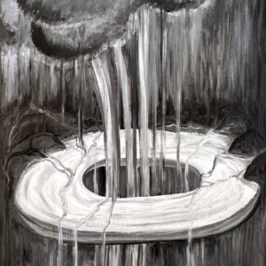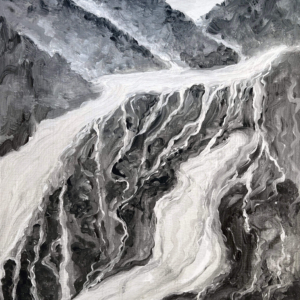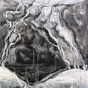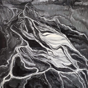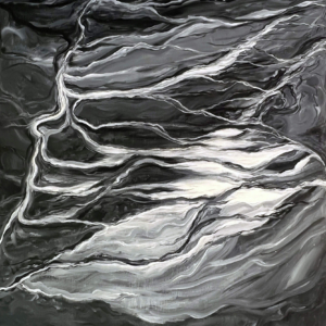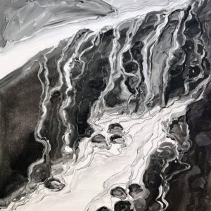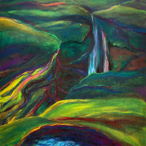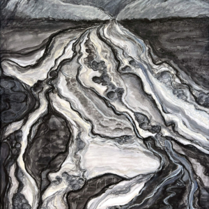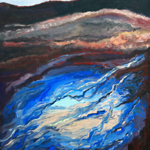 These paintings were inspired when I paid attention to my dreams and saw a sky blue lake underground. I asked a geologist friend about aquifers and learned there is one under every river. Under Missoula, a clay layer holds a vast freshwater aquifer. Some of the water beneath us takes a thousand years to travel from Hellgate Canyon to the Bitterroot River. We must honor and care for this water.